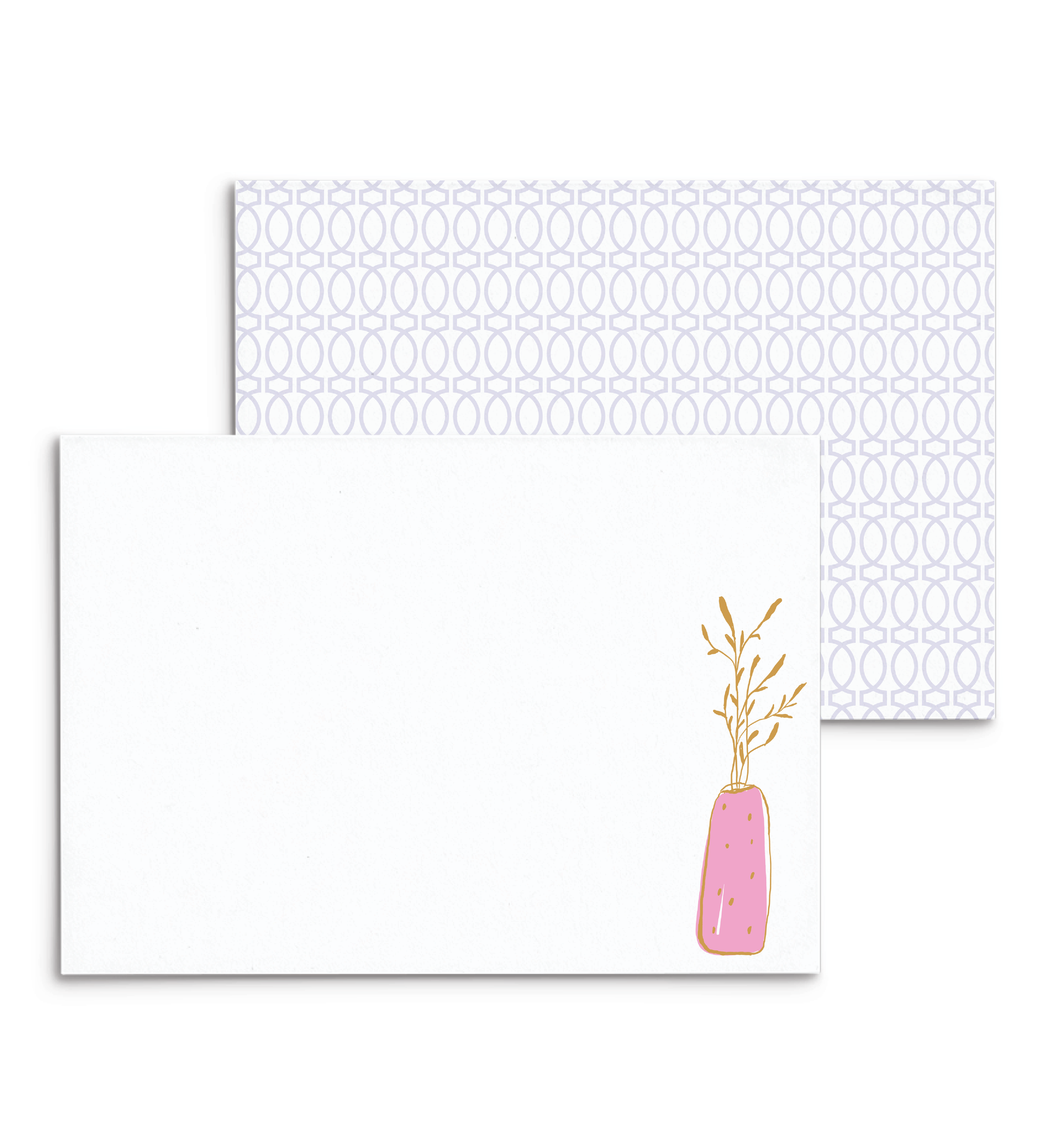 Plantly Panel Note Cards A2 - "Airy" - Natural Flax - Pink Vase