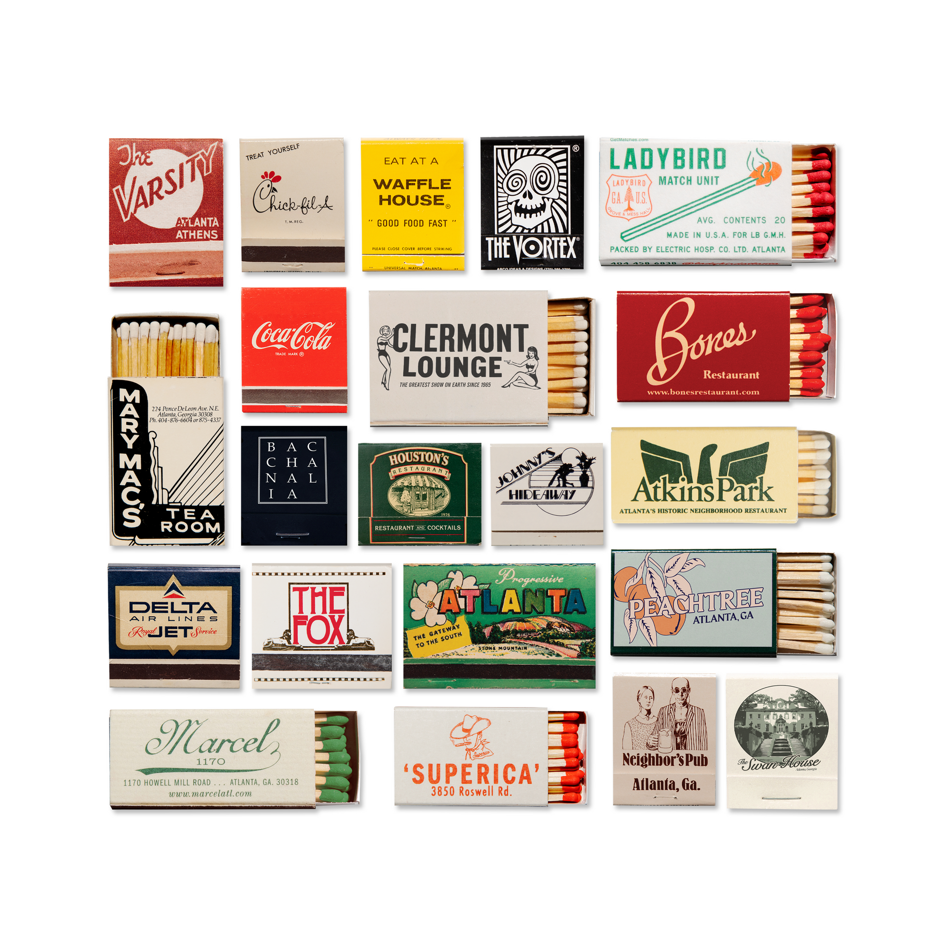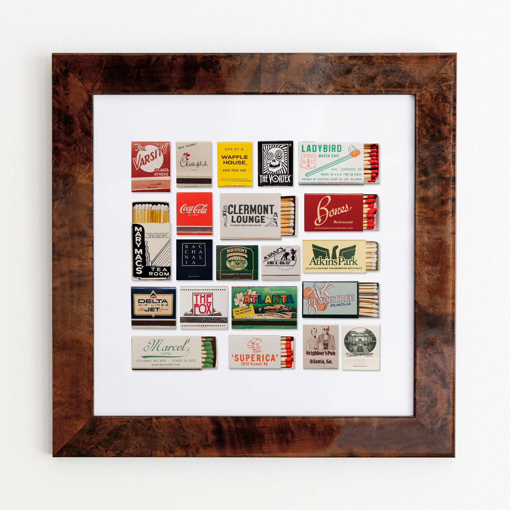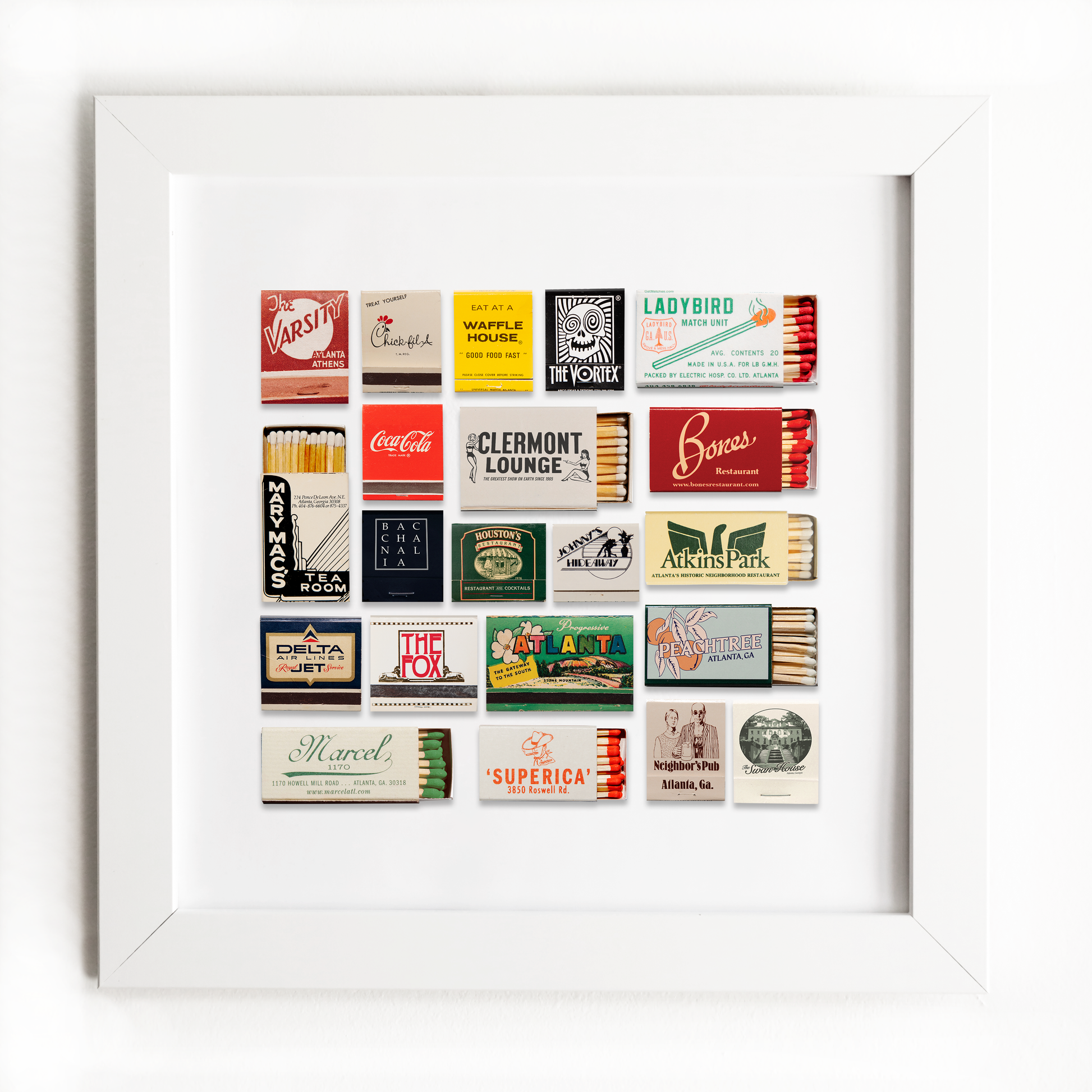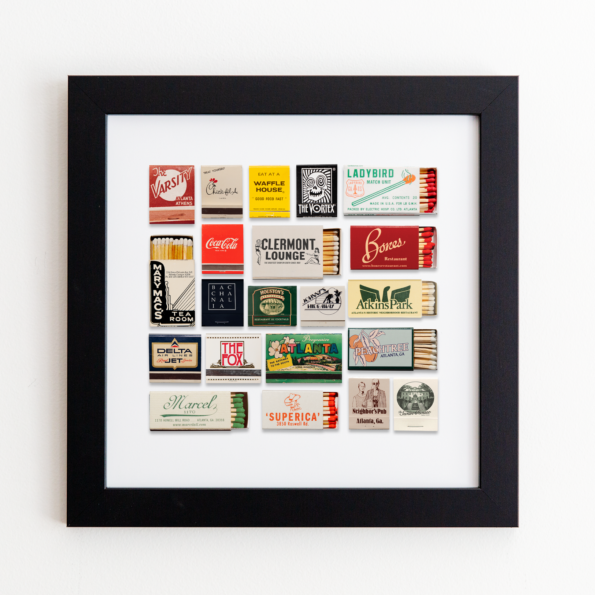 The Atlanta Collage print showcases an iconic matchbook design.