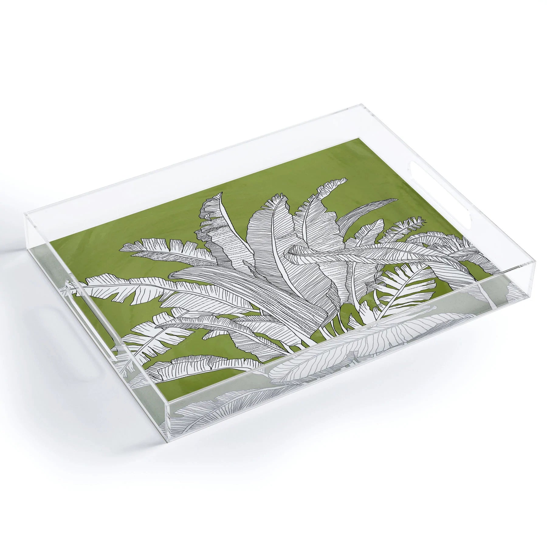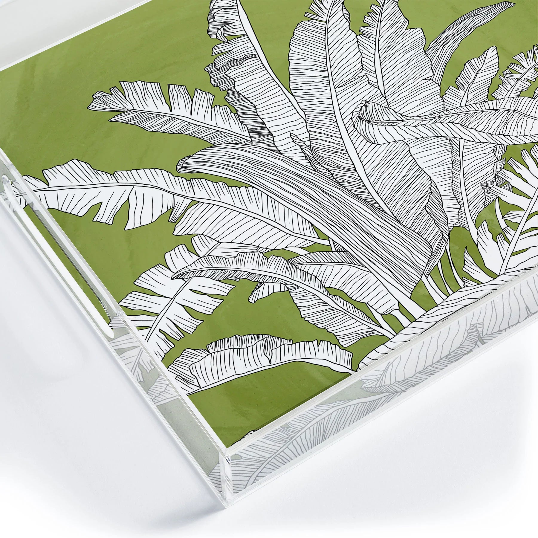 Banana Leaves on Green Acrylic Tray - Medium w/Handles
