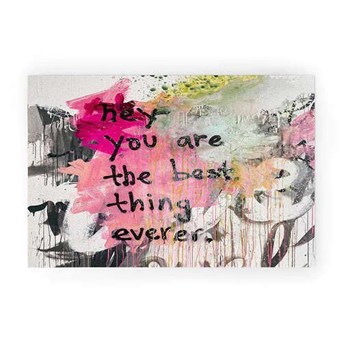 Greet your guests in style. Our welcome door mat adds a unique spin and first impression to your entryway. It's made from a durable looped vinyl so it can stand up to the elements and daily use with a non-slip latex backing so it won't slip and slide in a mudroom. They're available in a curated array of designs to match whatever decor aesthetic you're going for.