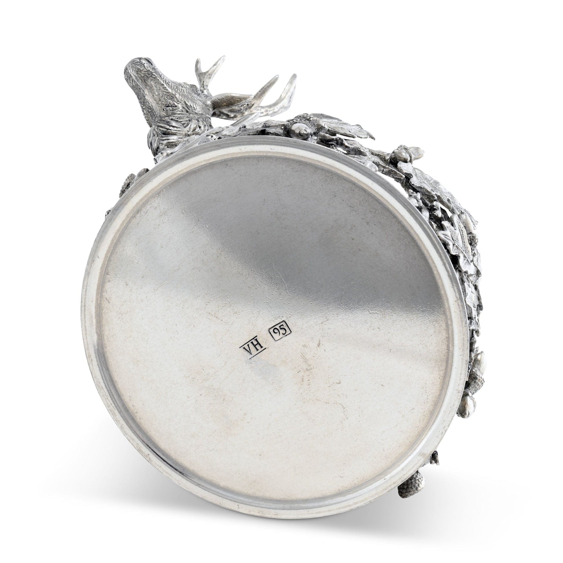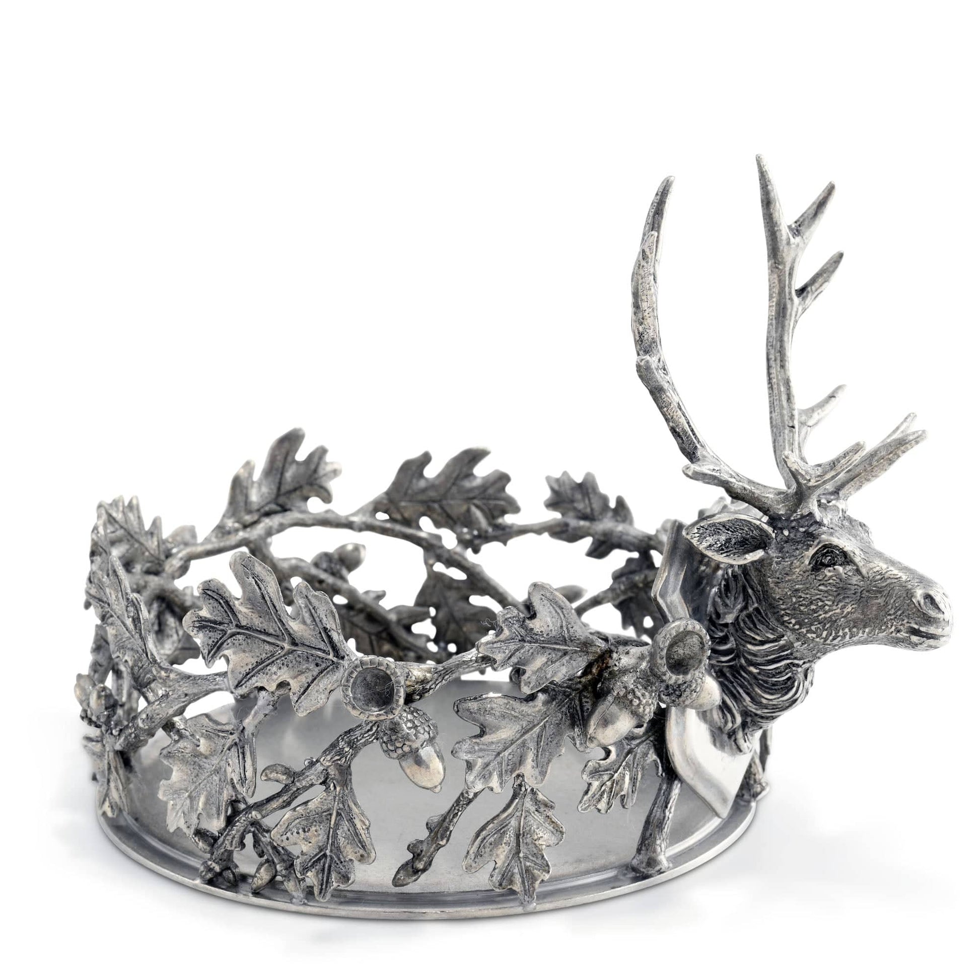 Bring rustic elegance to your table with this High-Quality Black Forest Design Coaster for Rustic Entertaining. Hand-cast in luxury grade pewter, it boasts intricate details of a charming acorn and oak leaf wreath surrounding a majestic 3-D stag head. Its generous size of 5"W x 7.75"L x 5.25"H lends itself perfectly for hosting fine wine nights or fancy country wine tastings.