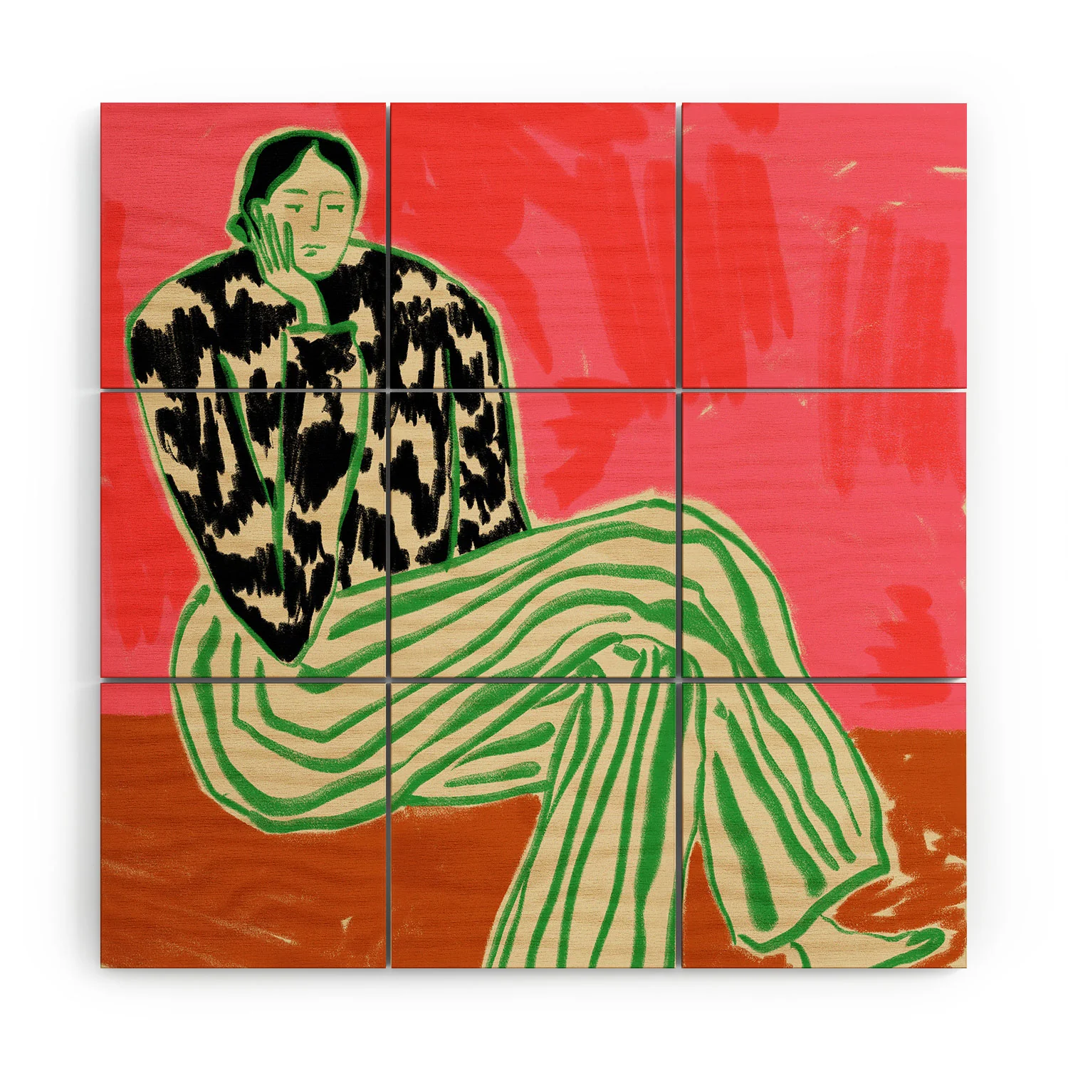 Calm Woman Portrait Wood Wall Mural