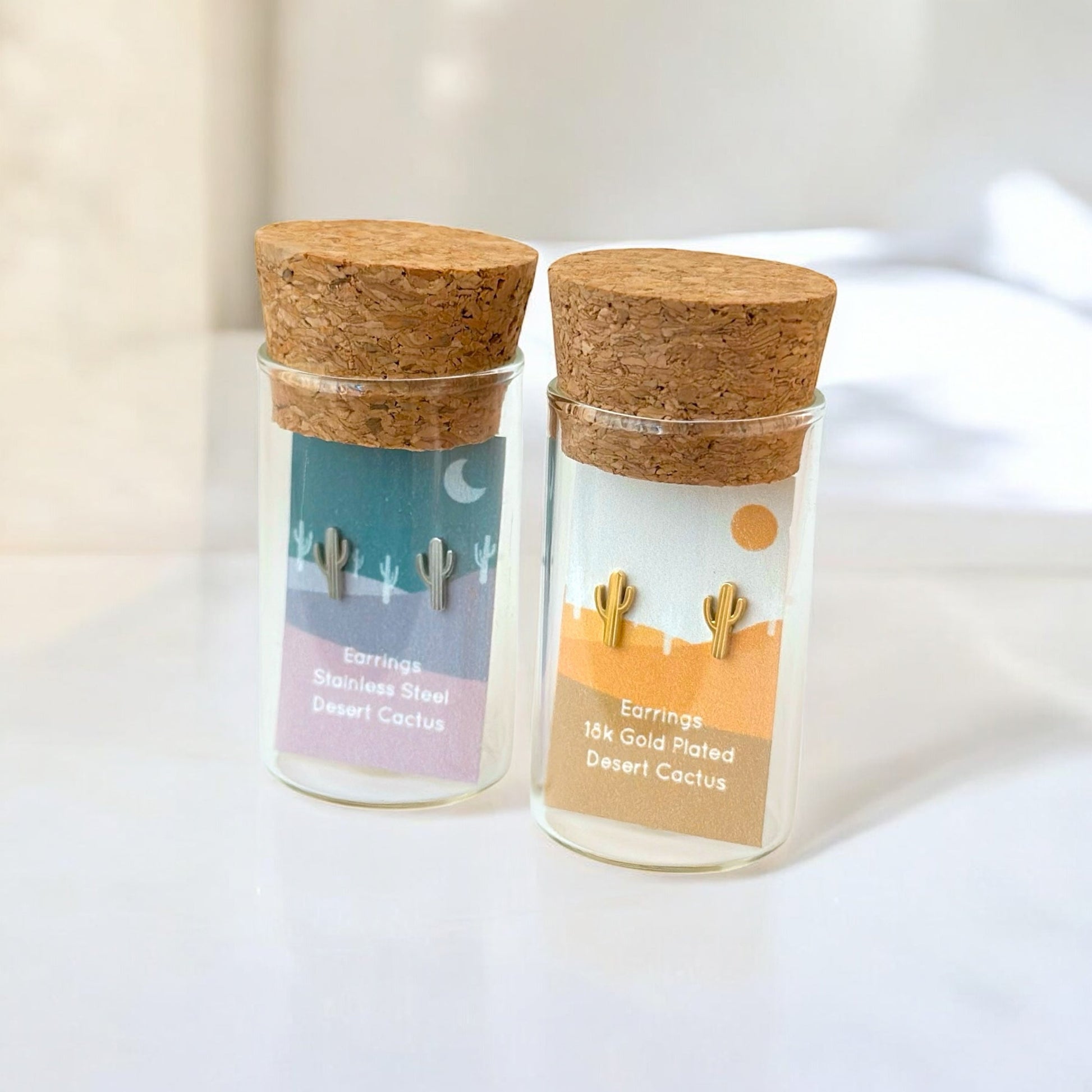 Hypoallergenic Desert Cactus Mini Plant Stud Earrings