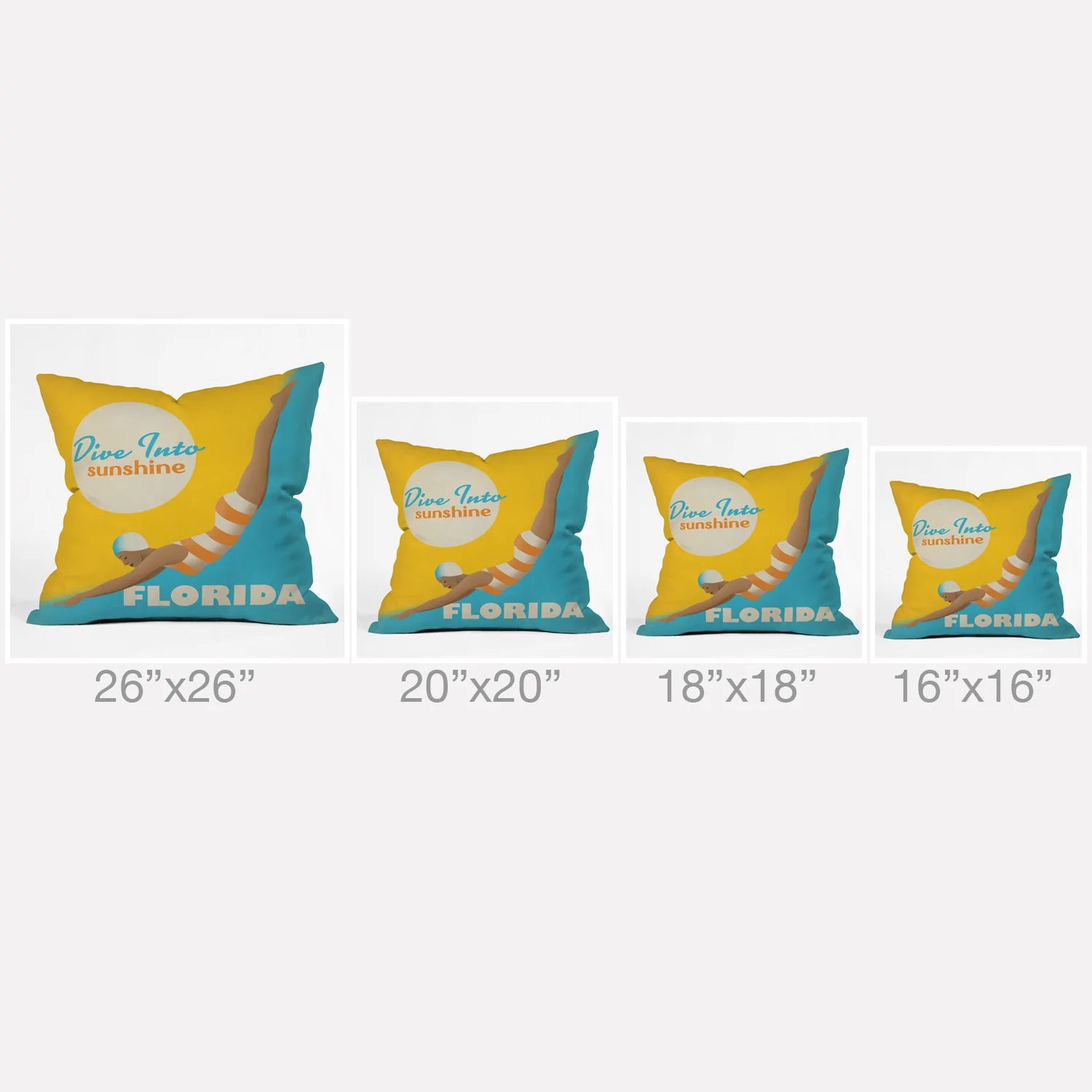 Add visual interest to any space. A pop of color here and mix and match conversation-starting artwork there, using various sizes to add depth to your living space. Our throw pillows are available in four sizes, crafted from 100% woven polyester twill with a fluffy insert and a sealed zipper enclosure. The artwork is permanently imprinted on the front and back for a fully decorated pillow.