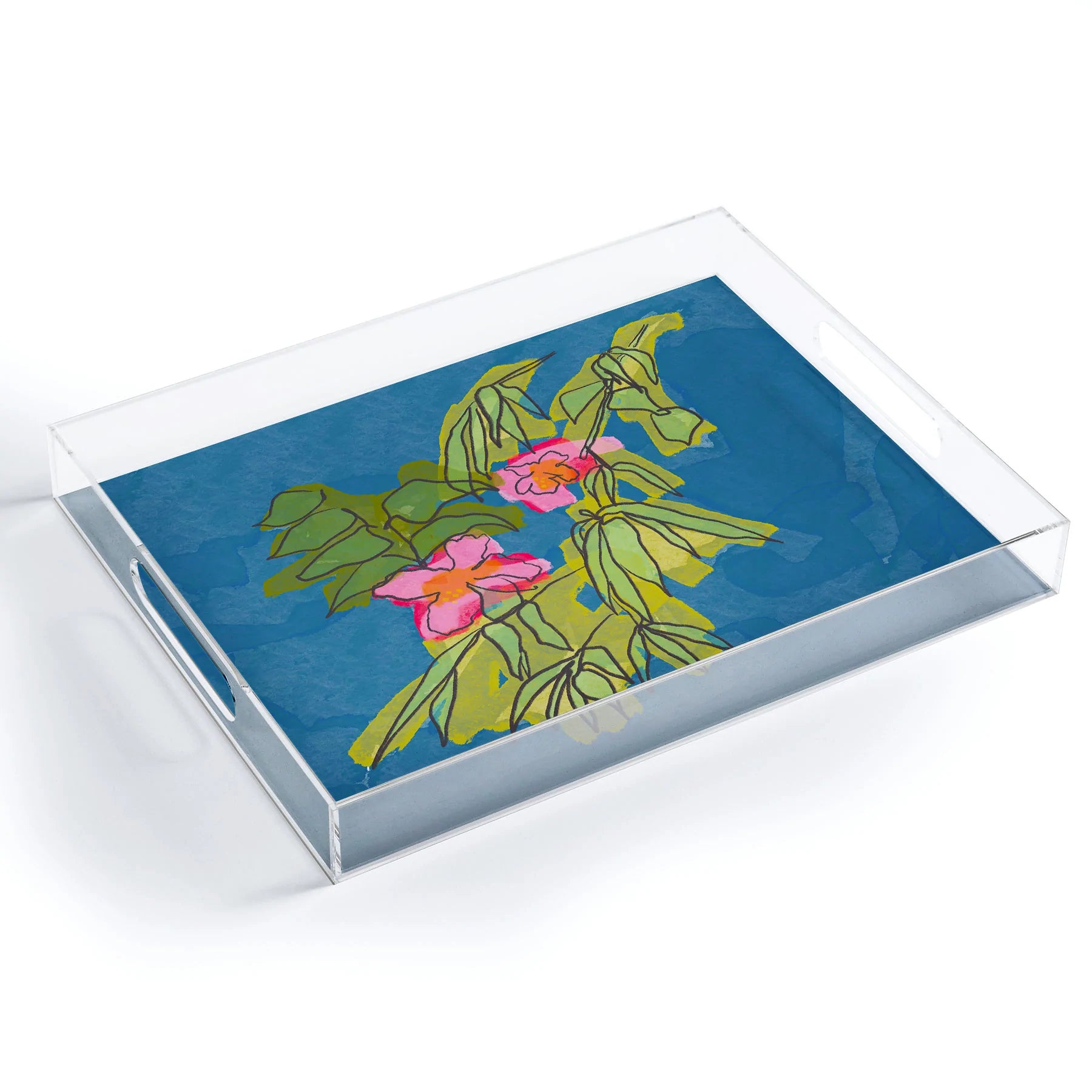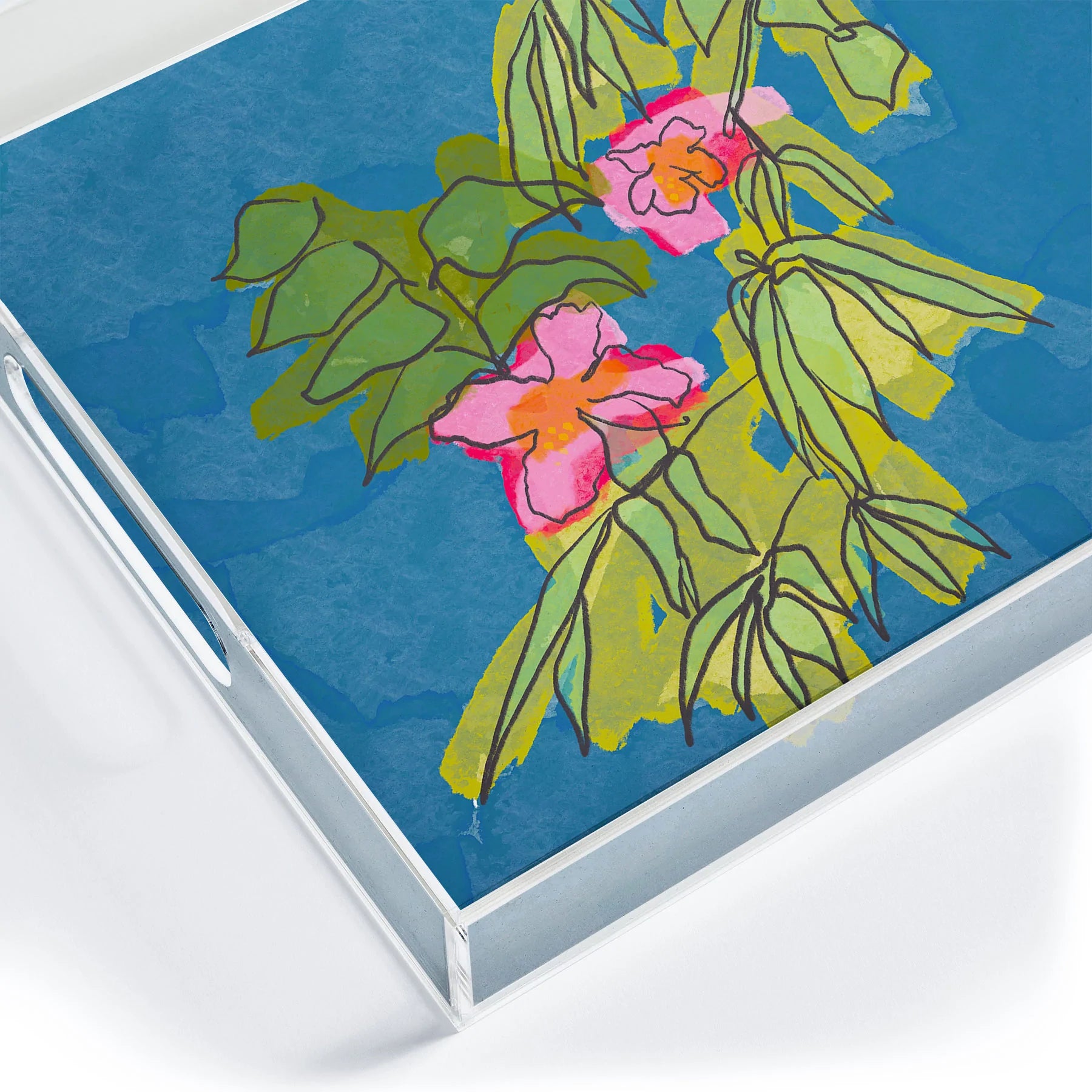 Flowers on Captiva Acrylic Tray - Medium w/Handles