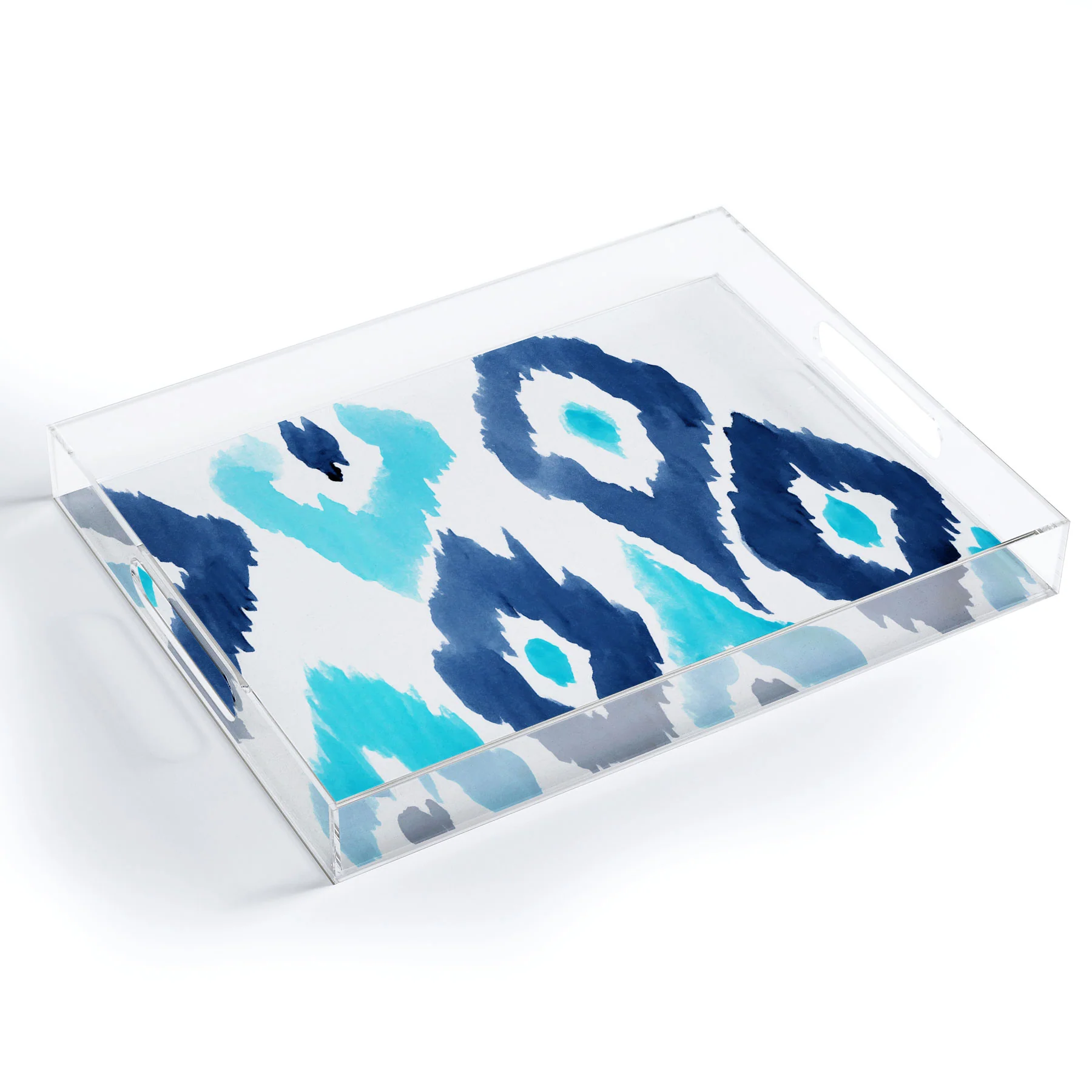 Malibu Blue Ikat Acrylic Tray - Medium w/Handles