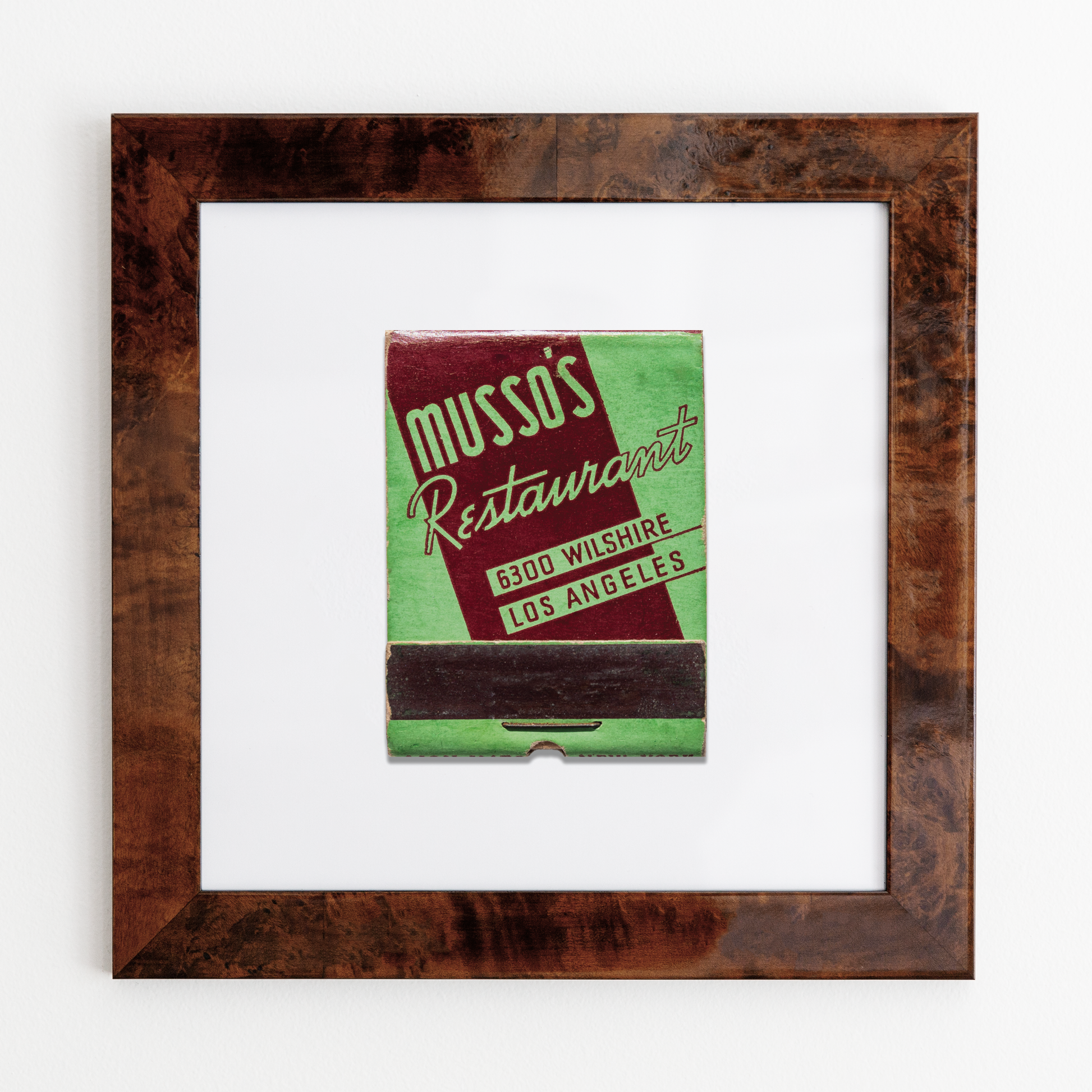 The Musso's Restaurant print showcases an iconic matchbook design.