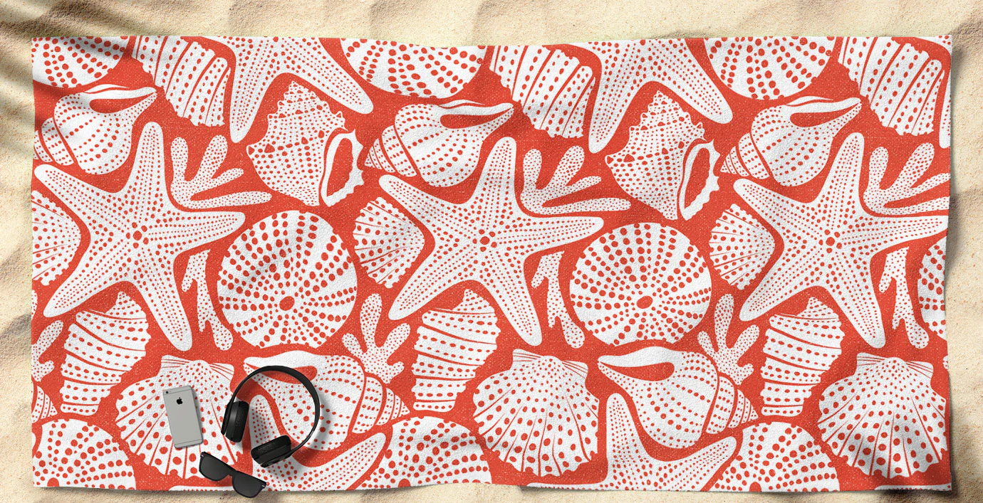 Ocean Floor Nautical Shells Red Beach Towel