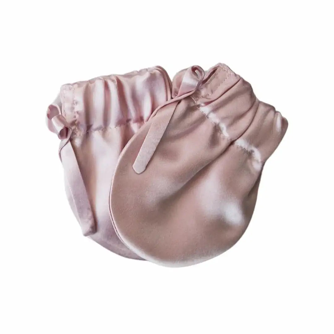 Charmeuse silk baby mittens are delicate and luxurious baby accessories made from soft, shiny organic charmeuse silk fabric. These mittens are designed to keep a baby's hands warm and protected, while also providing a stylish and elegant touch to their outfit. They are typically lightweight and breathable, making them a comfortable option for babies to wear. The softness of the silk also makes them gentle on a baby's delicate skin.
