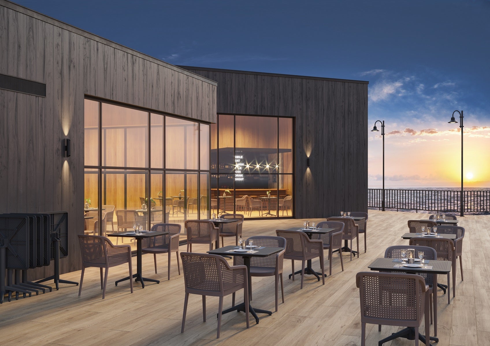 Featuring a minimalist mid-century design, the Newport chairs add a touch of modern elegance to any outdoor setting.- Stackable for easy storage when not in use, this set maximizes space efficiency.