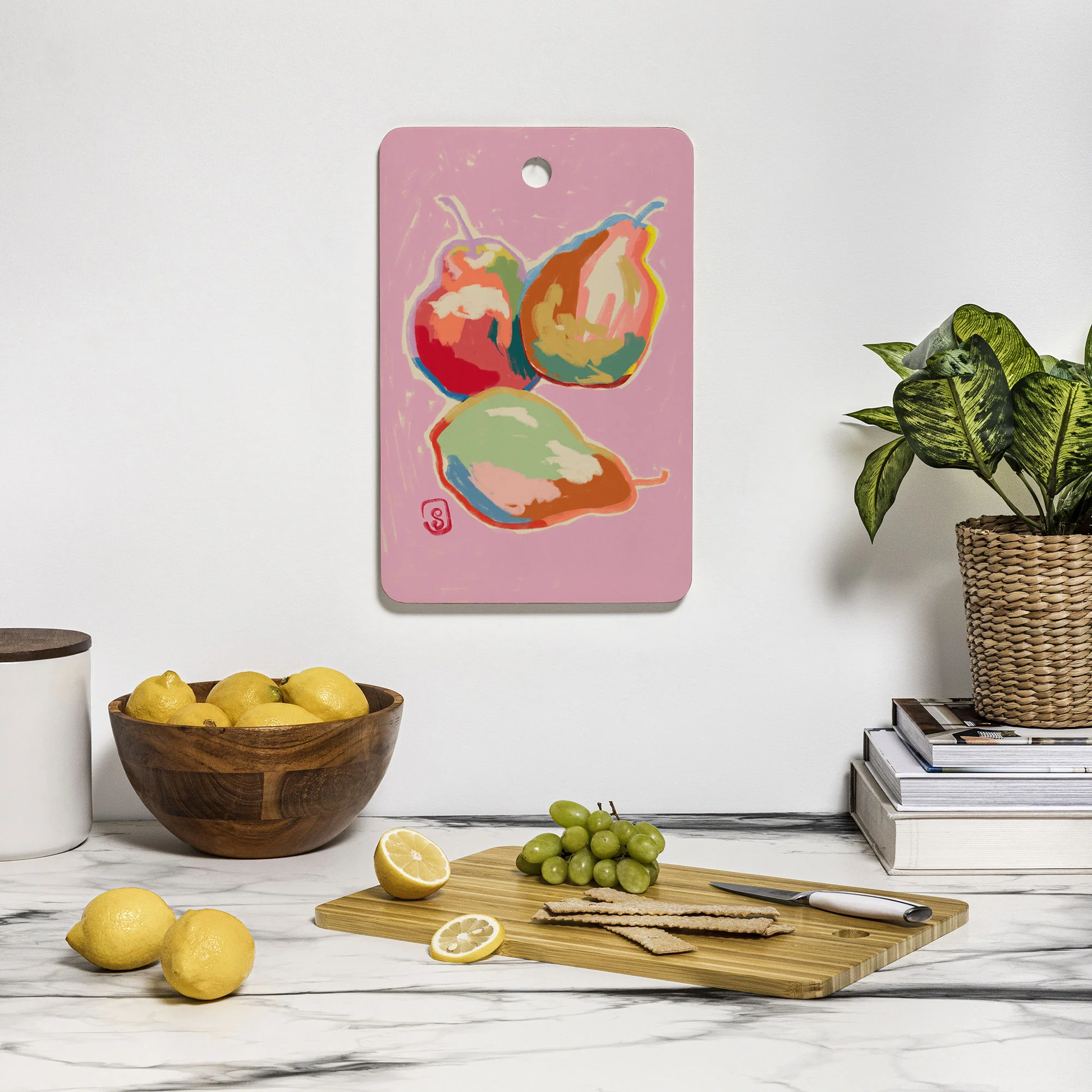 Display the artwork side which is permanently imprinted (with a protective satin finish) that will pop when displayed on your counter or hung on the wall through the 1" flush hole for handle. The prep side is a food-safe matte natural bamboo that can be easily washed with a non-abrasive cloth.