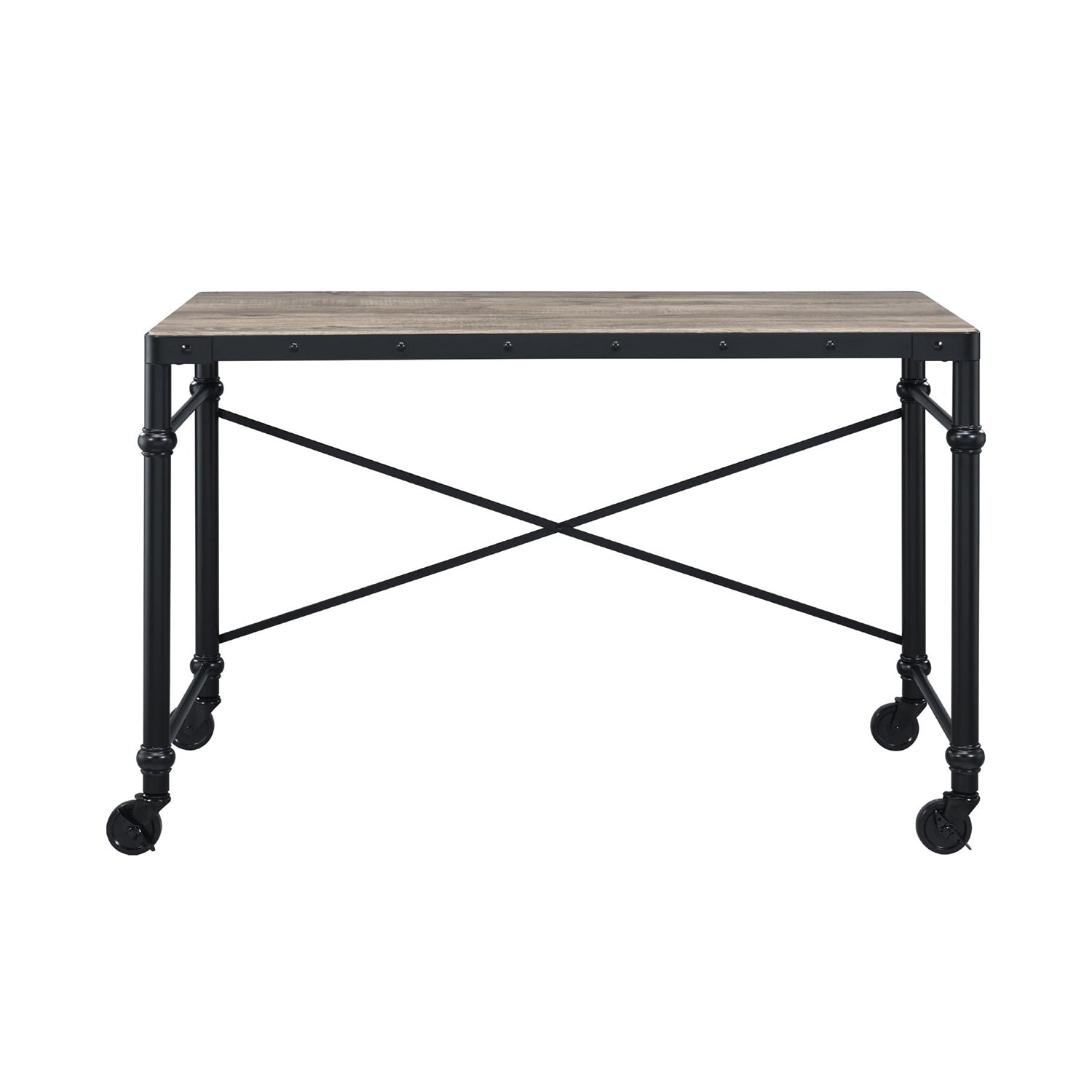 Rectangular Wooden Table Top Writing Desk, Rustic Oak and Black