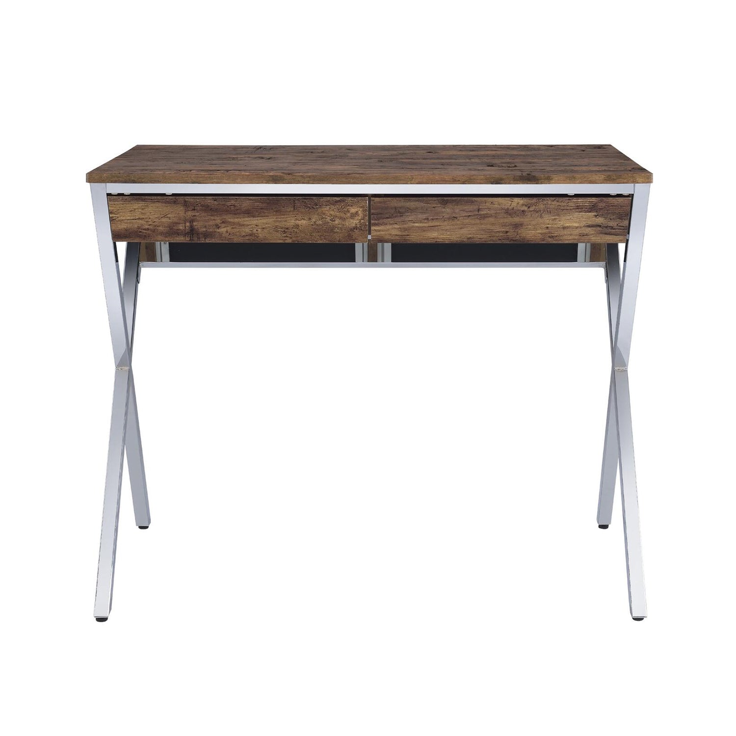 Rectangular Writing Desk with 2 Drawers, Weathered Oak and Chrome