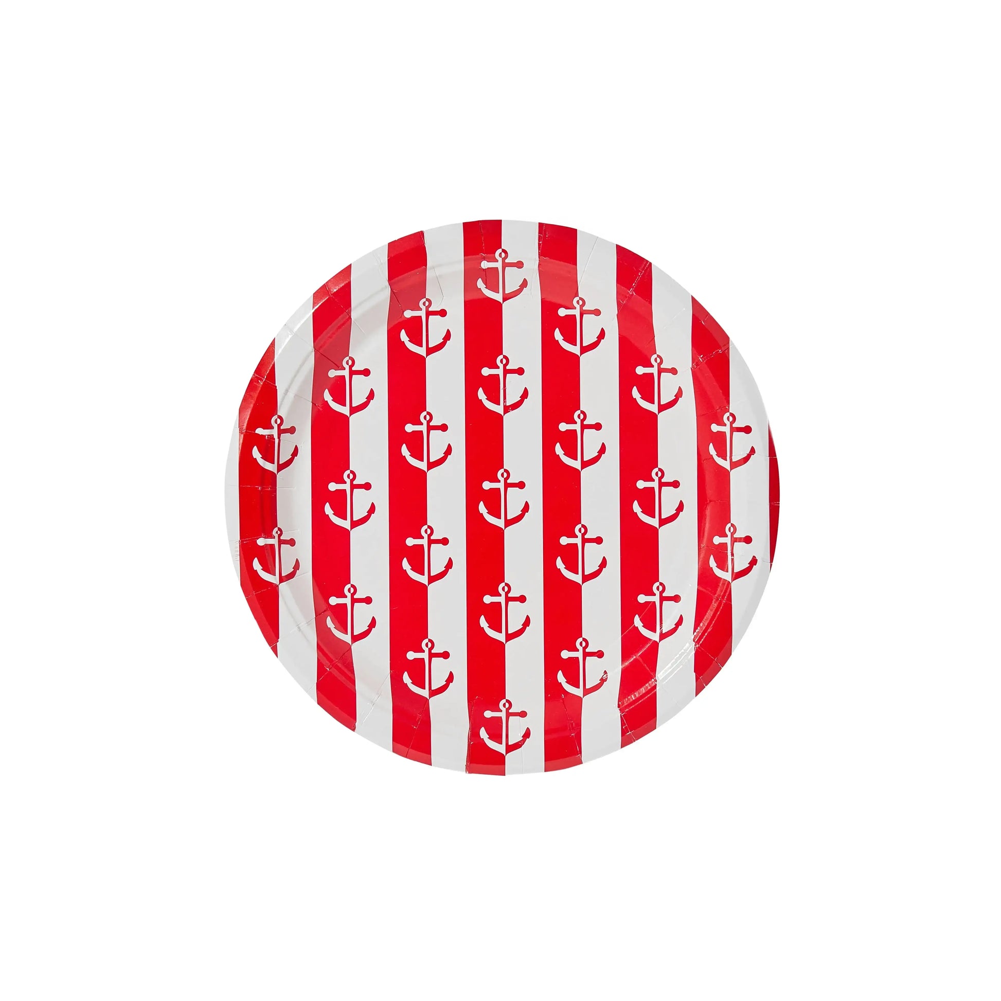 Red Anchor Away Stripes Dessert Plates - 8 Pack