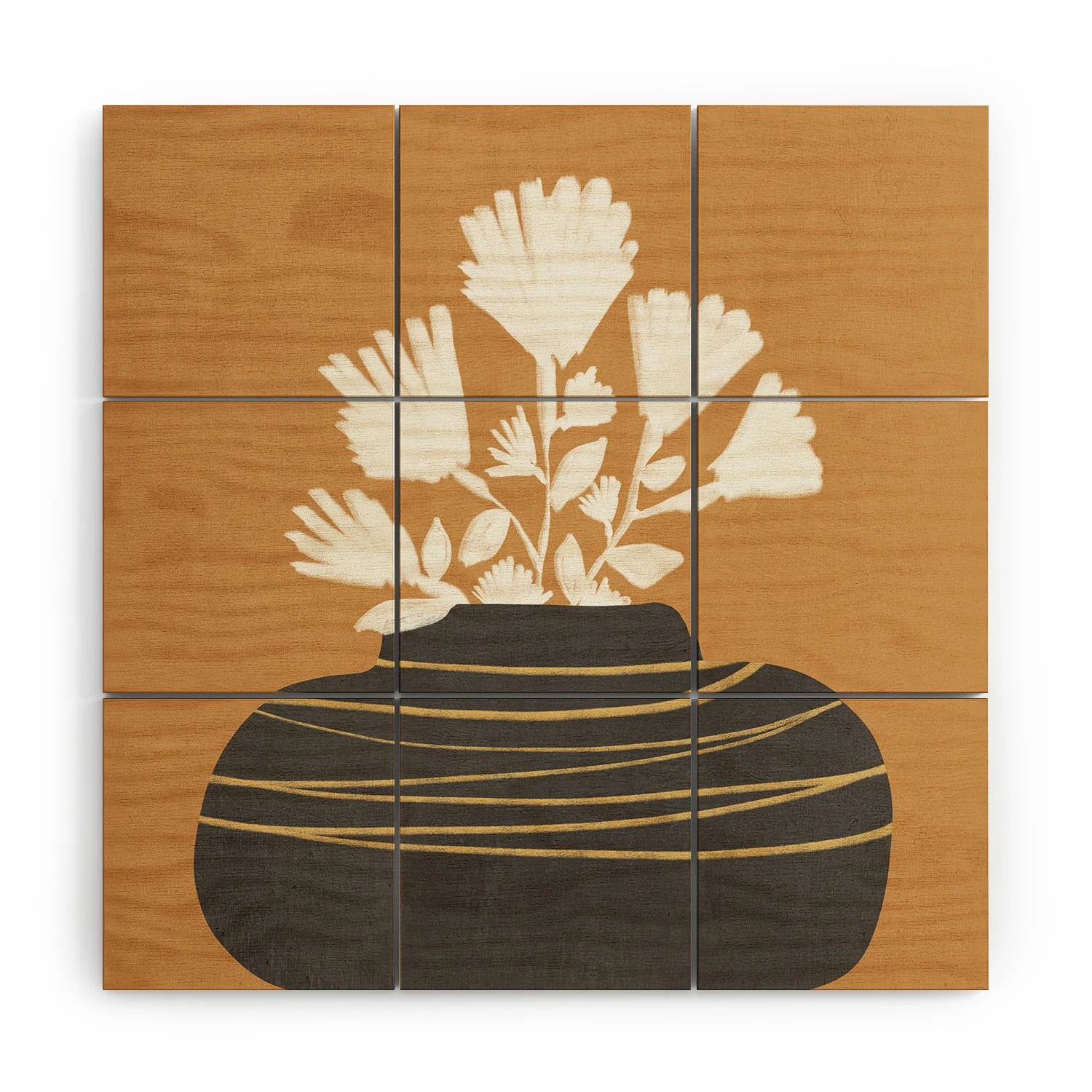 A set of nine wood wall tiles that you can arrange on your wall and adjust the space between each tile to create any number of different looks. Available in three sizes.