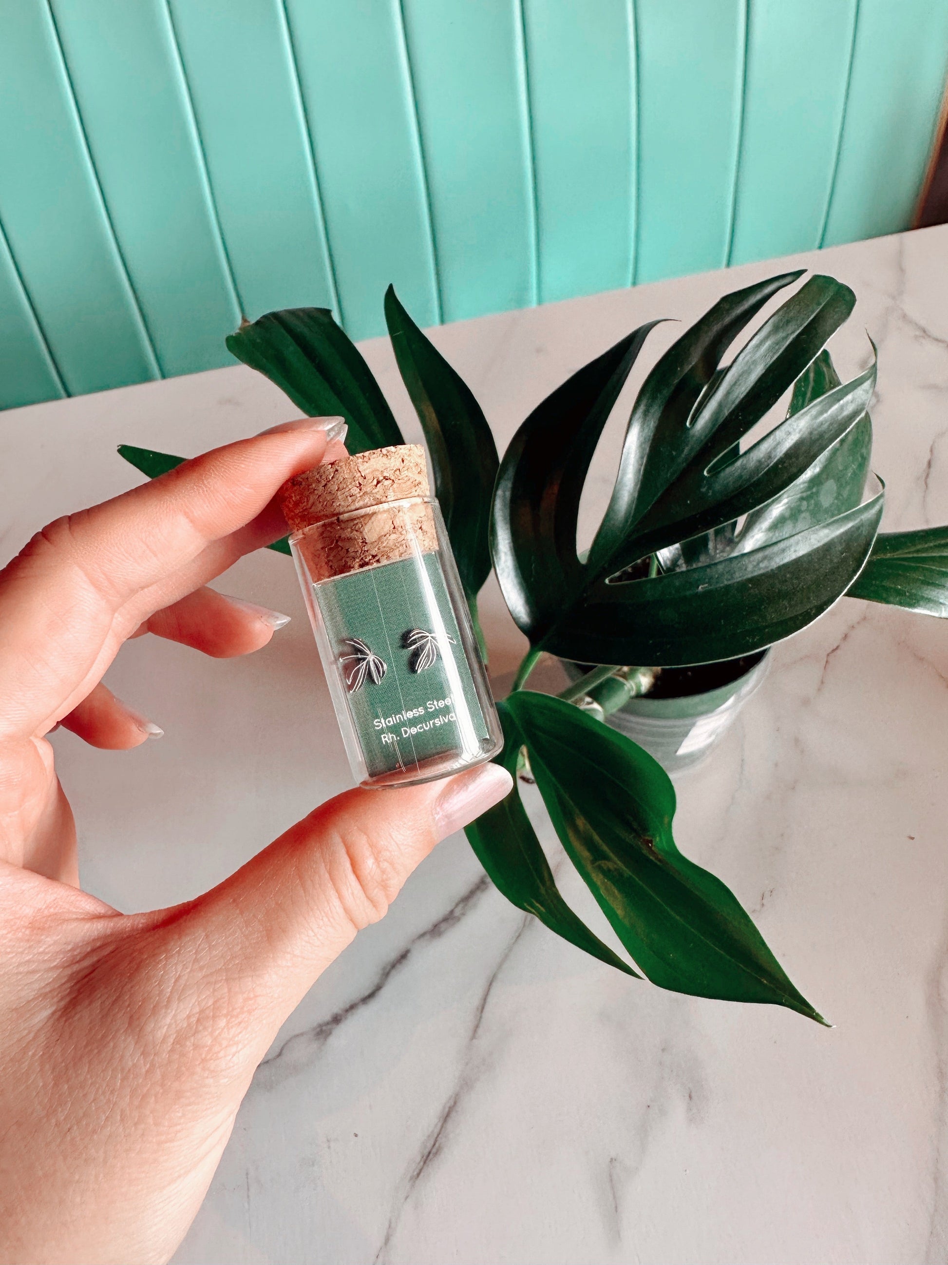 Plant Dosage | Hypoallergenic Tiny Dainty Rhaphidophora Decursiva earring studs | Gift for Plant Mama Daddy Parent