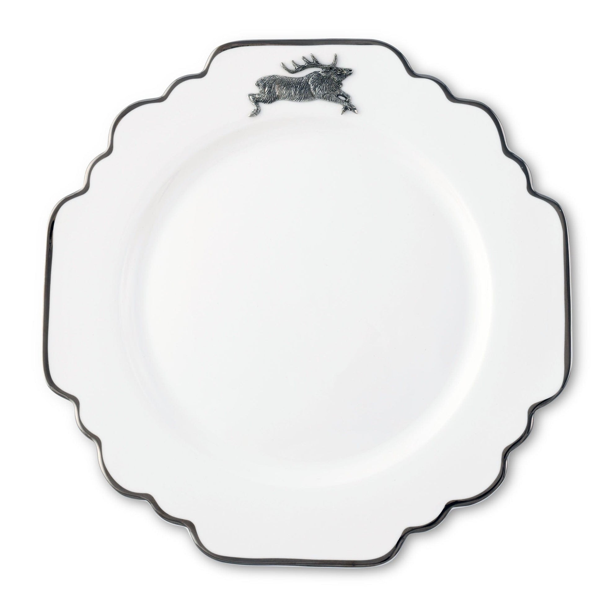 Running Elk Bone China Scallop Dinner Plate Platinum Rim