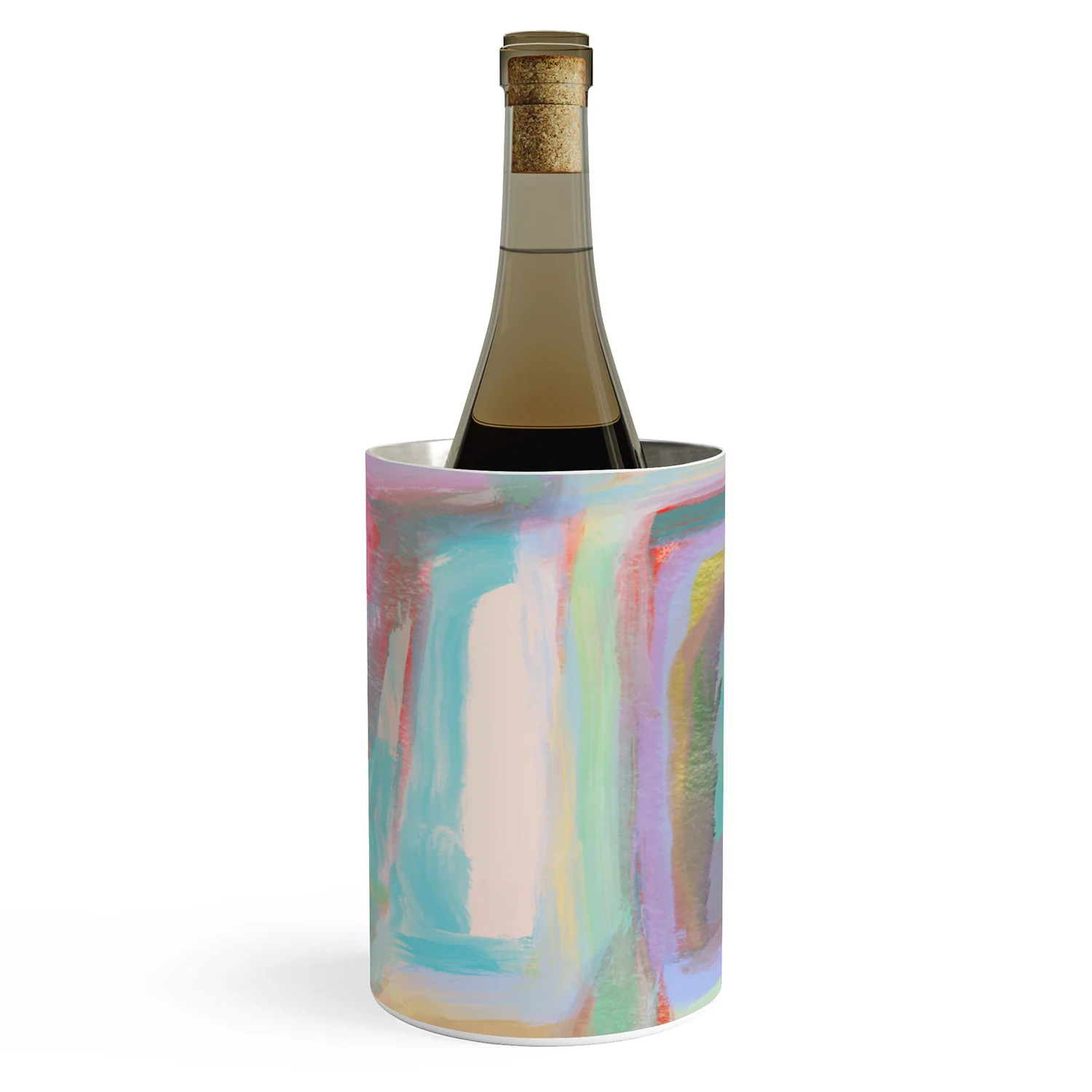 Keep the party going with our 57 oz wine chiller! Simply slide the bottle into the canister and enjoy. Made from dishwasher safe stainless steel, featuring a curated array of artwork professionally imprinted around the outside.