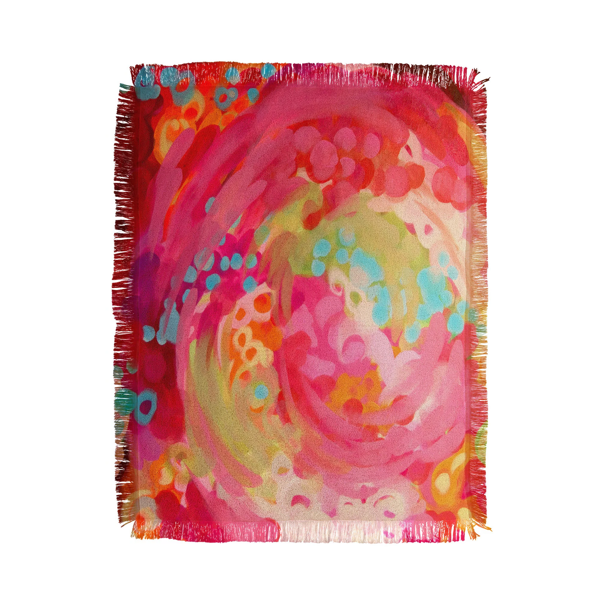 - Woven satin finished, polyester blanket with fringe