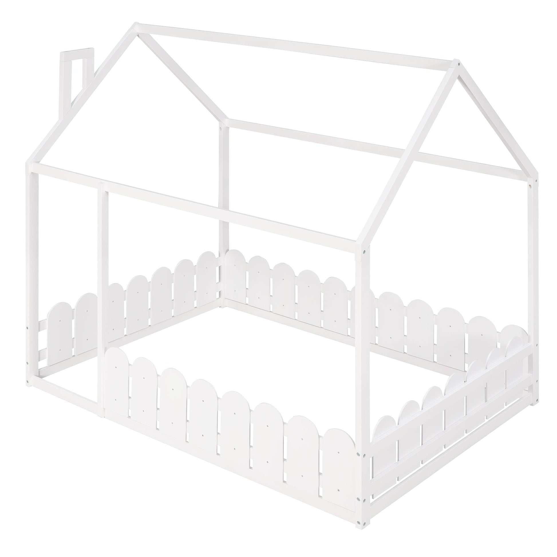 (Slats are not included) Full Size Wood Bed House Bed Frame with Fence,for Kids,Teens,Girls,Boys (White )(OLD SKU:WF281294AAK)