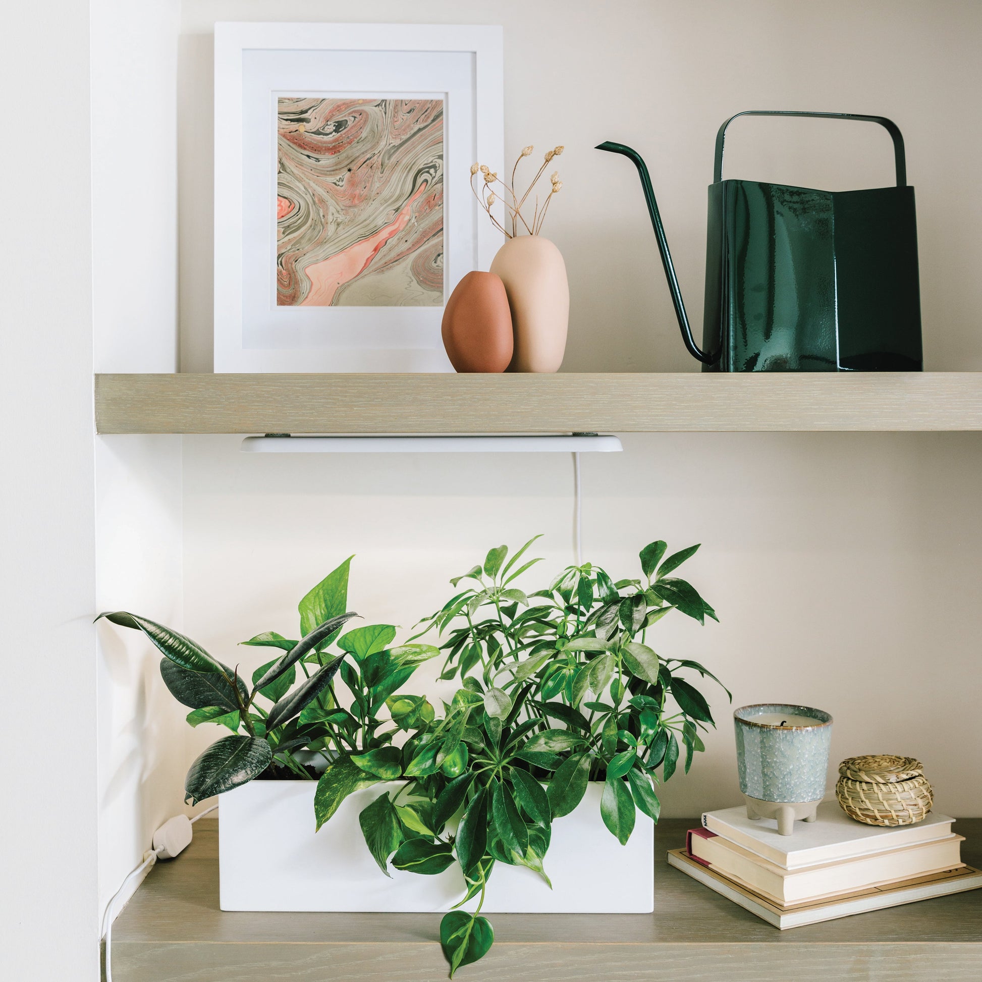 Plants will thrive anywhere in your home with our sleek Growbar. A low-profile flush-mount metal fixture, transform any shelf or bookcase into the perfect place for plants. Full-spectrum LED grow light emits a warm light that doesn't feel harsh or off-putting in your living space. Powered by our exclusive Smart App, you can set custom schedules and brightness for your plants. Backed by a 3-year warranty.