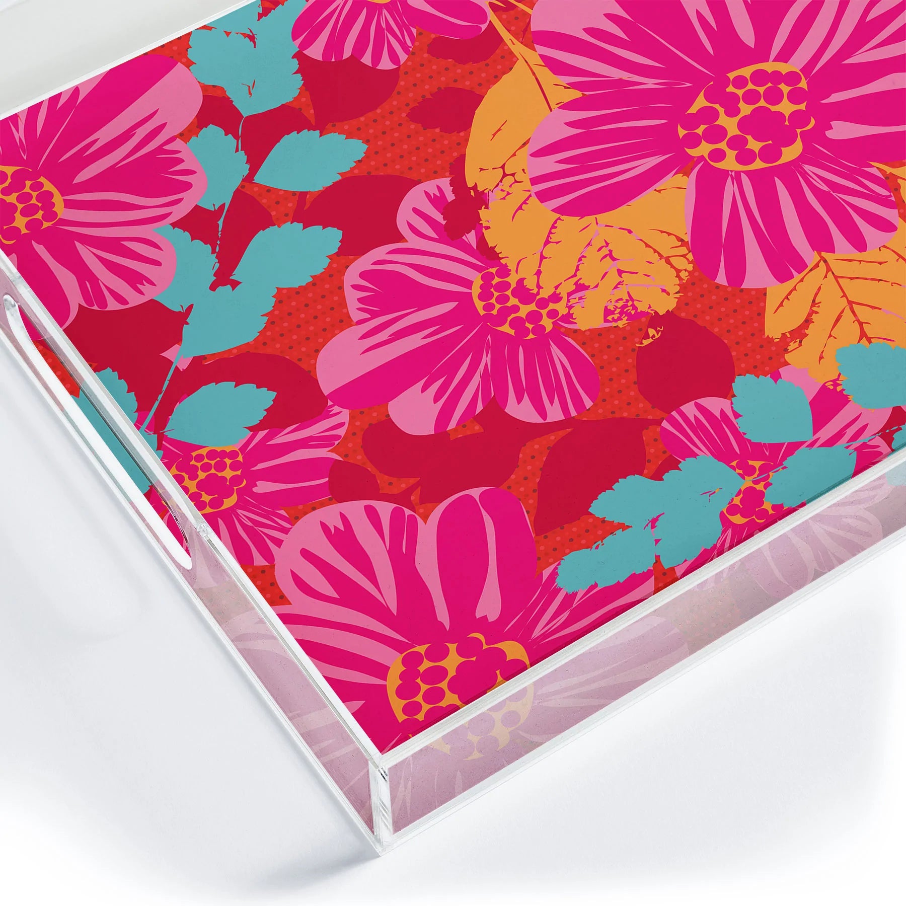 Smoldering Rosy Blooms Acrylic Tray - Medium w/Handles