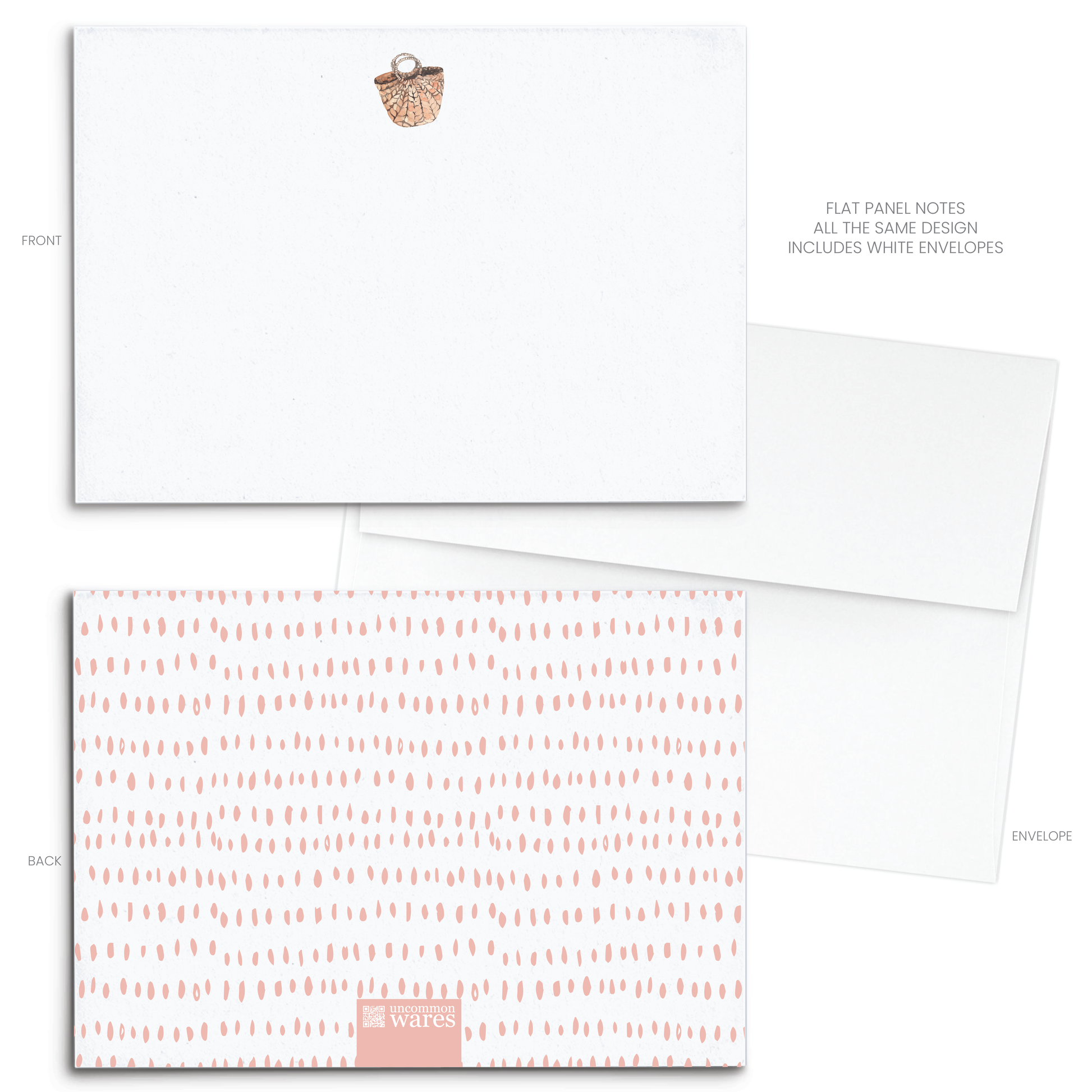 Our watercolor set of 5 flat panel note cards feature illustrated art on the front with a coordinating pattern on the back, complete with white envelopes. Perfect for gifting, be sure to snag multiple sets to stock your gift closet for friends, family, hostess and teacher gifts.