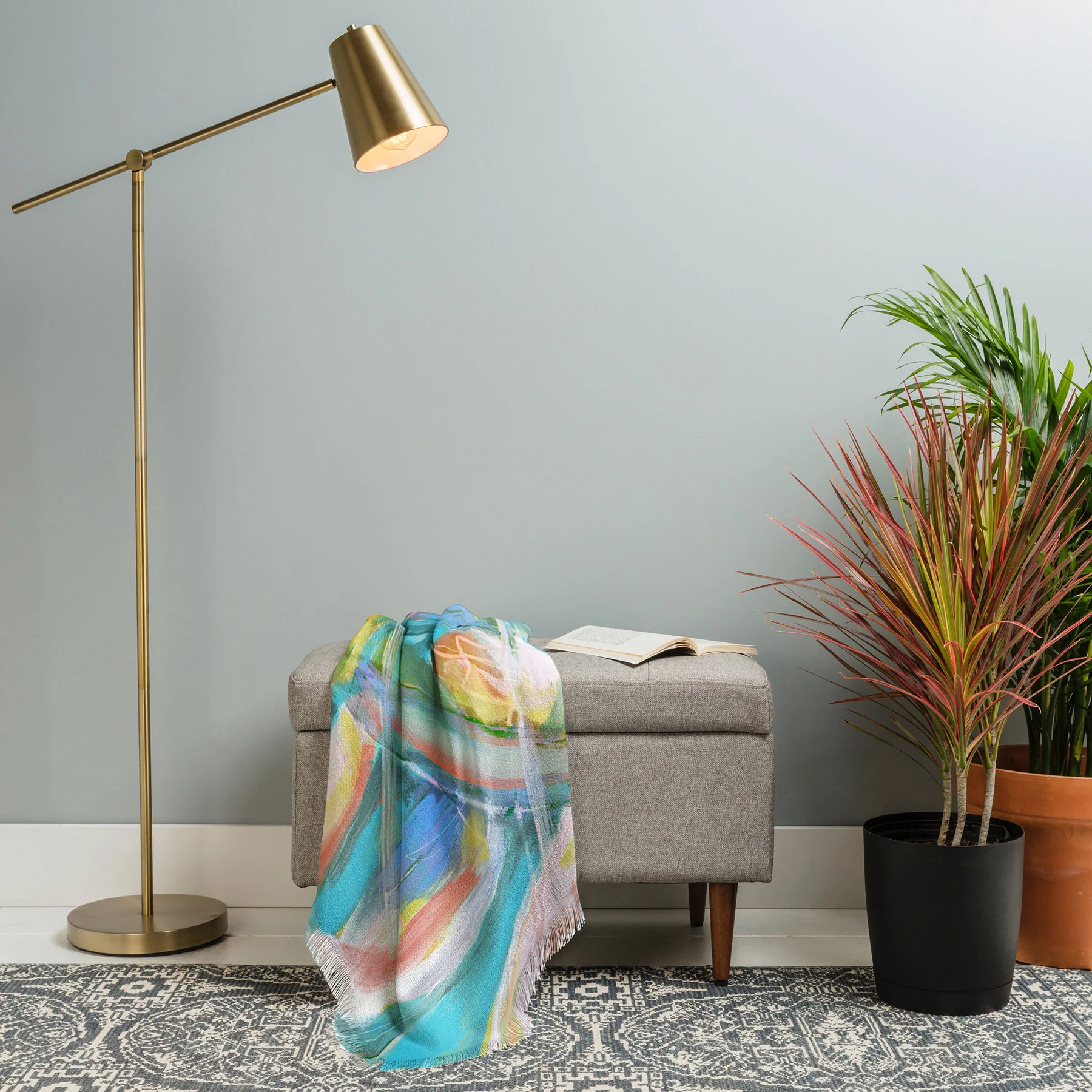 Weave in something new. Our woven throw blanket adds a luxurious touch to your snuggle-time staple. Crafted from a machine washable, satin-finished polyester yarn with lovely artwork on top and crisp white on the reverse.
