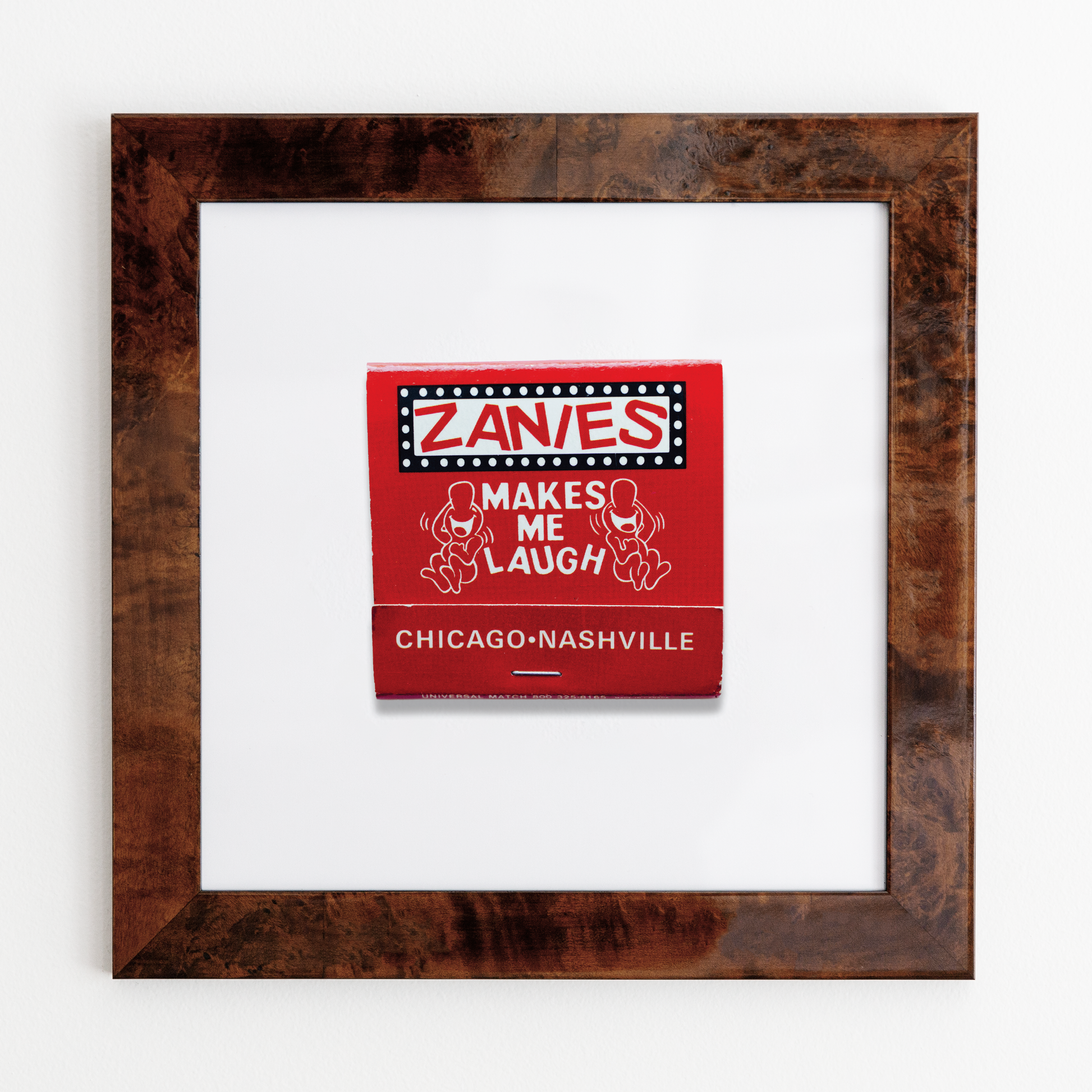 The Zanies print showcases an iconic matchbook design.
