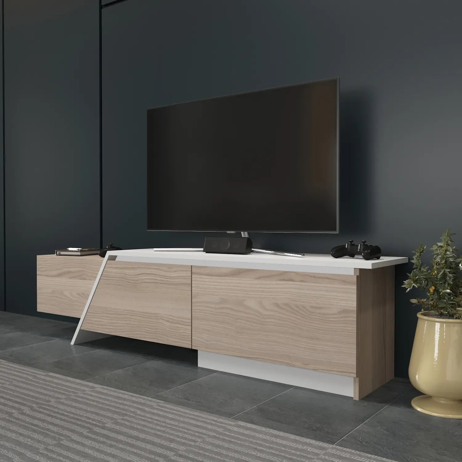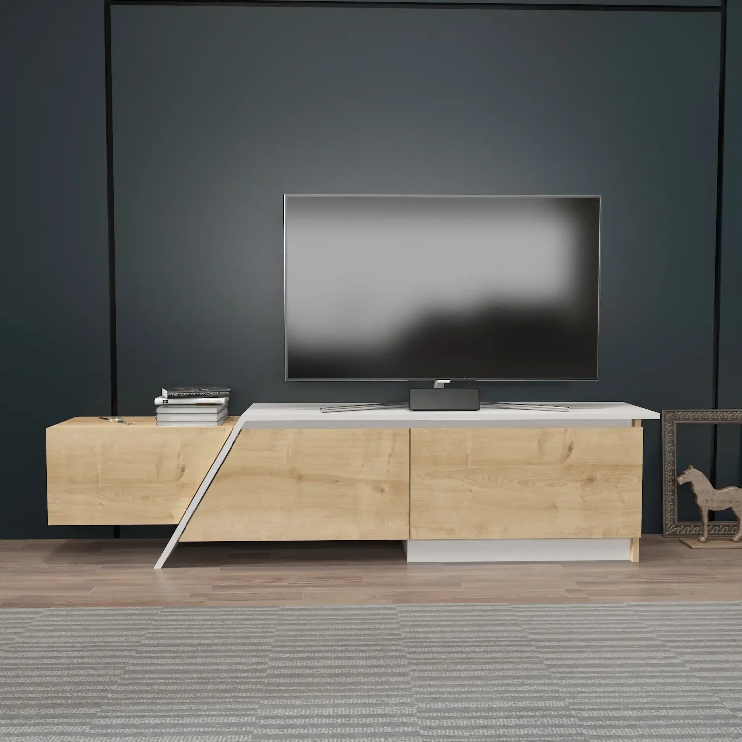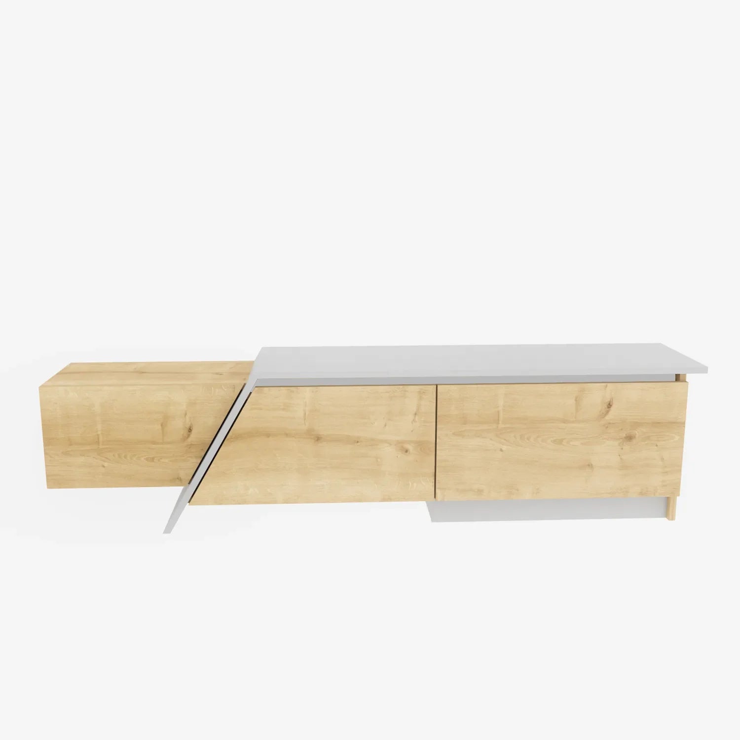 Add a touch of modernity and asymmetry to your room with the Zonas 71" Wide TV Stand and Media Console. This sleek and stylish piece features 2 drop-down cabinets and 1 regular cabinet, offering ample storage space for your books, magazines, and other items you wish to keep out of sight. Crafted from high-quality 18mm thick manufactured wood and banded with PVC edge banding tape, this media stand ensures durability and a polished look.